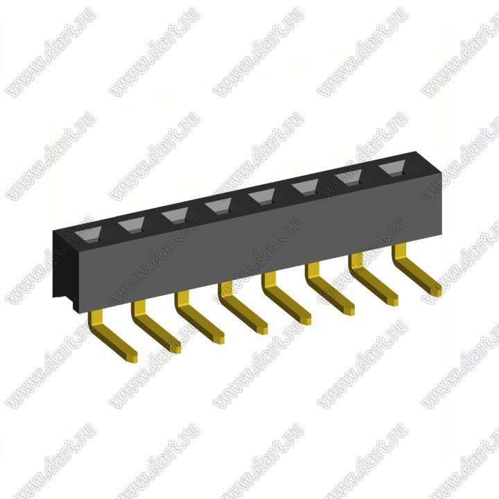 розетки однорядные угловые на плату (гнездо) для монтажа в отверстия, высота изолятора 3,6 мм; шаг 2,54 мм