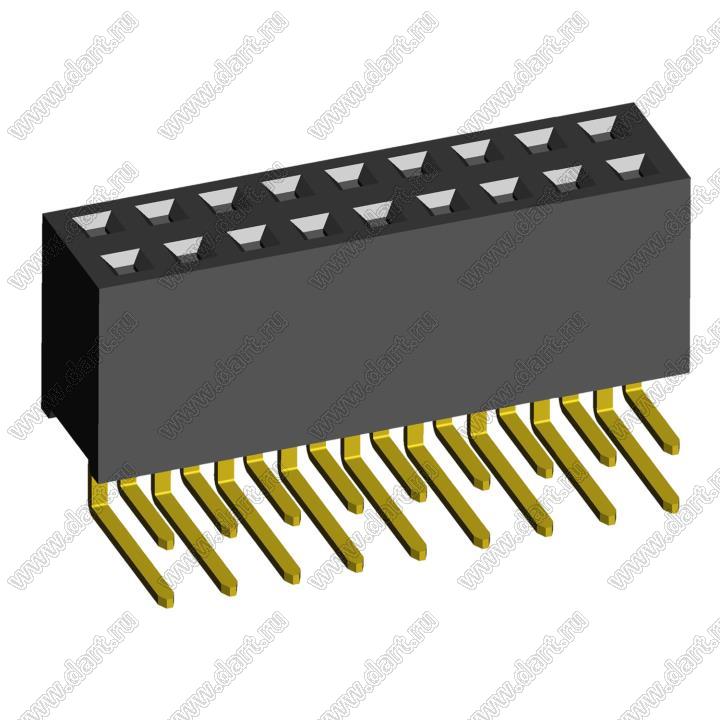розетки двухрядные угловые (гнездо) на плату для монтажа в отверстия, высота изолятора 8,5 мм; шаг 2,54 x 2,54 мм
