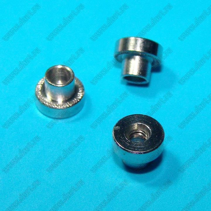 Втулки резьбовые развальцовочные М2 (бонки развальцовываемые) предназначены для установки в отверстия тонких листовых панелей, чтобы обеспечить надежное резьбовое соединение деталей с панелью. Устанавливаются в шасси расклепыванием с помощью конического ударника. Материалы: латунь (возможно покрытие никелем), сталь (возможные покрытия: цинк, никелирование, омеднение), нержавеющая сталь. Материал и покрытие отдельно оговариваются при заказе. На плоской или боковой сопрягаемой поверхности обычно выполняется насечка, препятствующая проворачиванию втулки при закручивании винта в резьбу. Изготовленные ранее варианты приведены ниже. Втулки резьбовые развальцовочные (бонки) могут быть также изготовлены из упомянутых материалов по чертежу заказчика с указанием допусков. За основу можно взять чертеж из приведенных ниже и изменить в нем размеры на нужные. Минимальный запуск в производство нестандартных втулок от 1000 штук. Минимальный заказ товара, имеющегося на нашем складе, не ограничен. Условия поставки уточняйте у менеджеров.