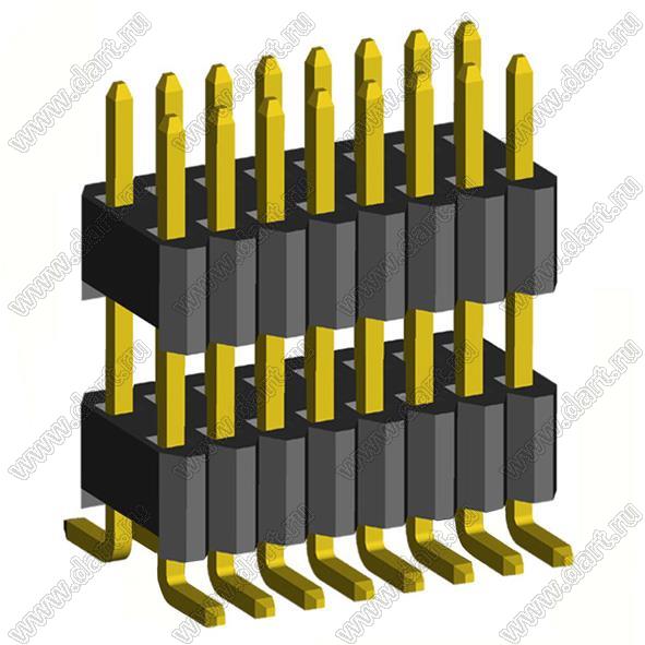 вилки штыревые открытые прямые двухрядные с двойным изолятором на плату для поверхностного (SMD) монтажа на плату, шаг 1,27 x 2,54 мм