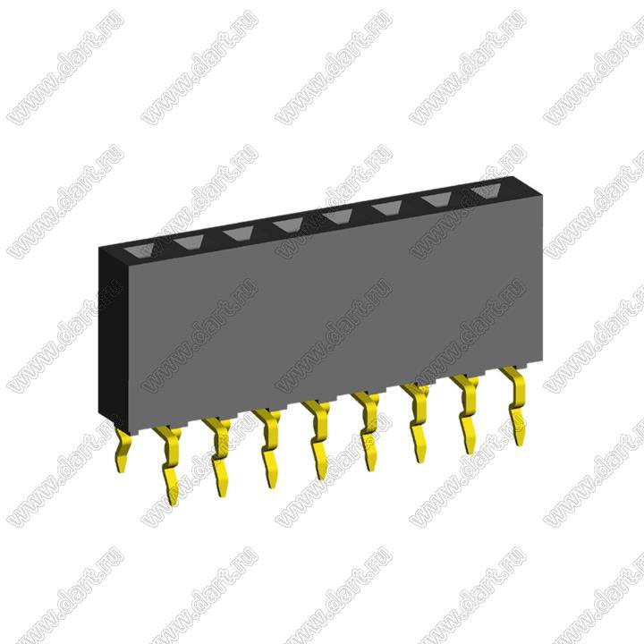 розетки однорядные прямые (гнездо) на плату для монтажа в отверстия, высота изолятора 8,5 мм; шаг 2,54 мм