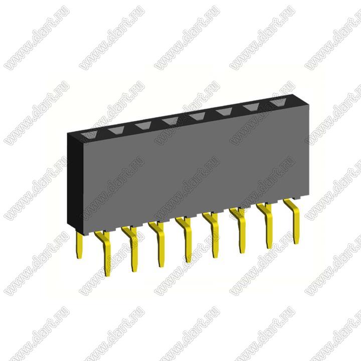 розетки однорядные прямые (гнездо) на плату для монтажа в отверстия, высота изолятора 8,5 мм; шаг 2,54 мм