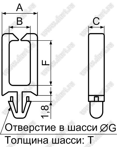Размер A: 10,25 мм Размер B: 6,25 мм Размер C: 4,5 мм Размер F: 13,0 мм Материал: нейлон-66 Класс огнестойкости: 94V-2 Цвет: черный |