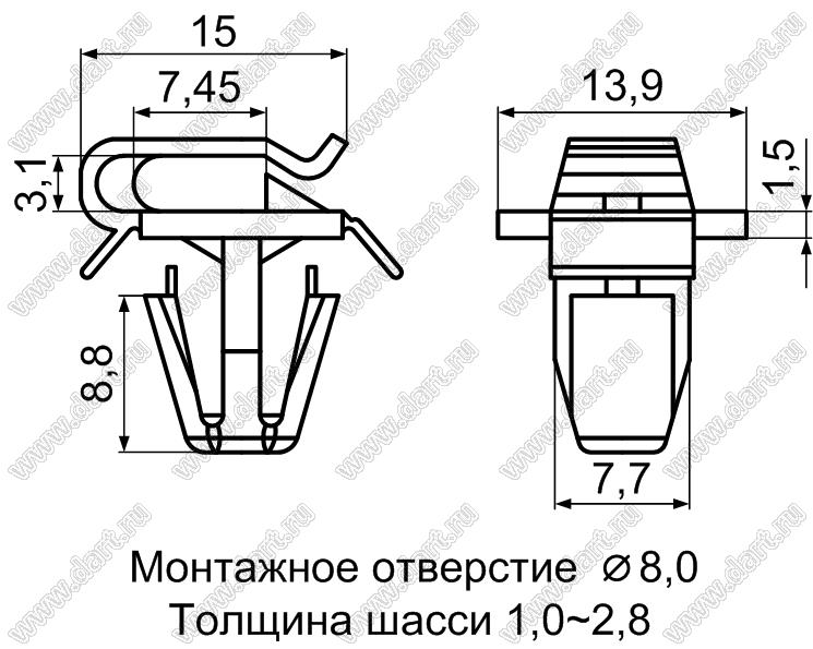 Материал: нейлон-66 (UL) Класс огнестойкости: 94V-2 Цвет: натуральный |