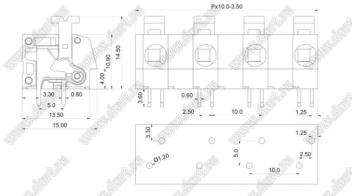 Клеммники нажимные KF202-10.0 серии с шагом 10.0 мм, прямые, предназначены для монтажа в отверстия печатних плат. Конструкция соответствует международным стандартам IEC60998, UL1059, UL486E, CSA C22.2 No.158. Условия поставки клеммников нажимных KF202-10.0 серии уточняйте у наших менеджеров.