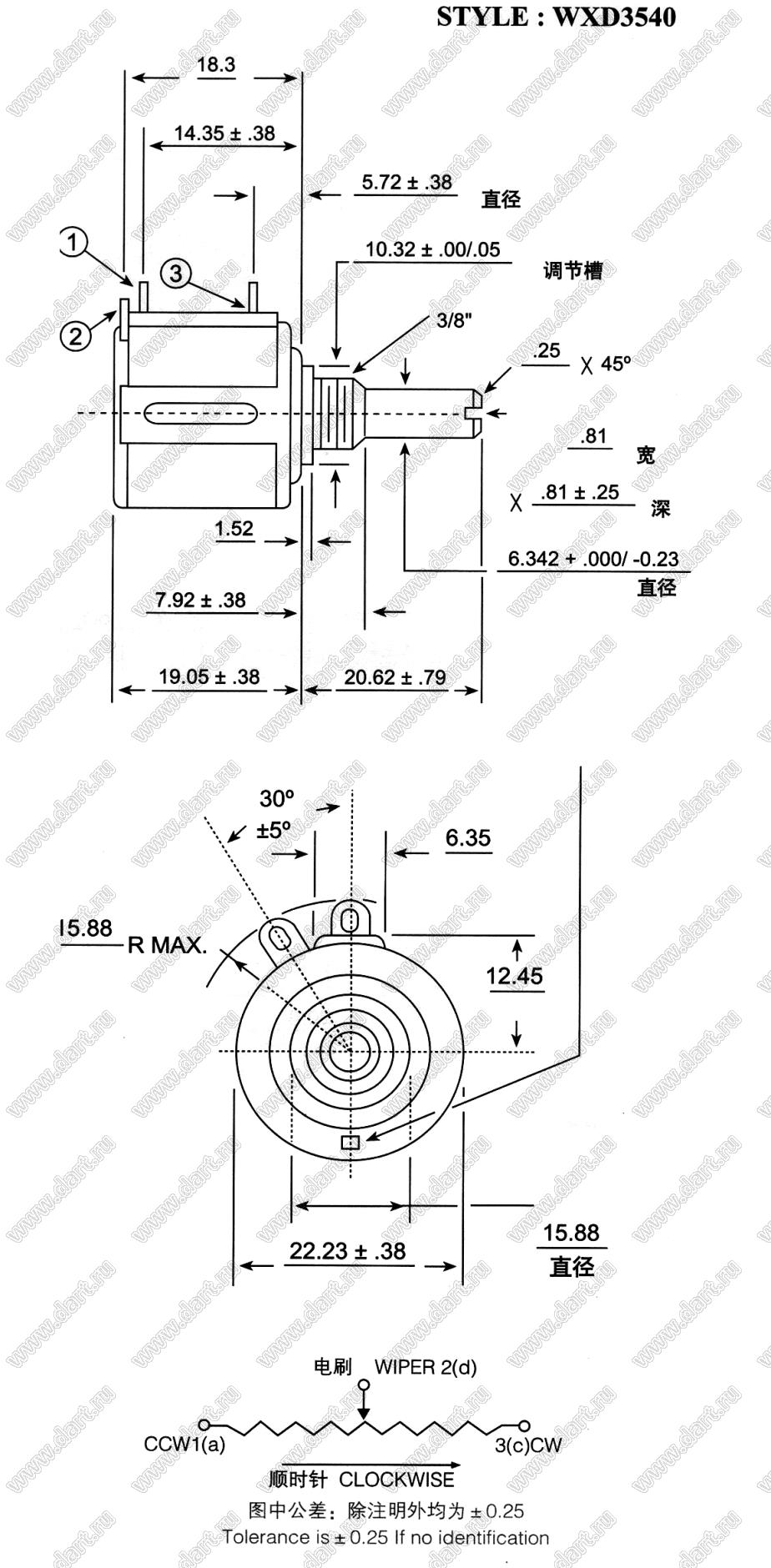 Каталог > Электронные компоненты, радиодетали > Резисторы > Резисторы подстроечные > WXD35 серия