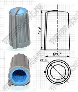 1) Серия: BLKN 2) Размеры DxH: 10x18 3) Тип вала: D: вал круглый 4) Размер вала: 6 5) Цвет корпуса G: серый 6) Цвет вставки: O: оранжевый L: голубой