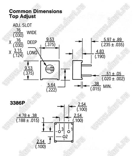Каталог > Электронные компоненты, радиодетали > Резисторы > Резисторы подстроечные > Резисторы подстроечные для выводного монтажа > 3386 серия > 3386P-1-203 (20K)