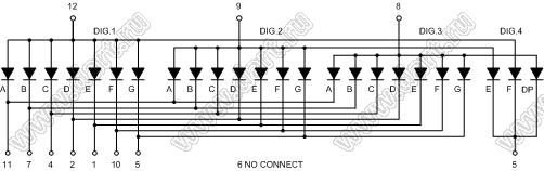 Каталог > Оптоэлектроника и индикация > Индикаторы светодиодные (сегментные дисплеи, матрицы, шкалы, светящиеся поля) > Цифровые и цифро-буквенные cветодиодные сегментные индикаторы (дисплеи) > 4-разрядные сегментные индикаторы > 4-разр. 0.39 дюйм. 7-сегм. 3491 серия > BJ3491DY