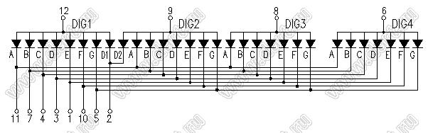 Каталог > Оптоэлектроника и индикация > Индикаторы светодиодные (сегментные дисплеи, матрицы, шкалы, светящиеся поля) > Цифровые и цифро-буквенные cветодиодные сегментные индикаторы (дисплеи) > 4-разрядные сегментные индикаторы > 4-разр. 0.5 дюйм. 7-сегм. 5402 серия > BJ5402DG