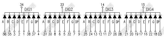 Каталог > Оптоэлектроника и индикация > Индикаторы светодиодные (сегментные дисплеи, матрицы, шкалы, светящиеся поля) > Цифровые и цифро-буквенные cветодиодные сегментные индикаторы (дисплеи) > 4-разрядные сегментные индикаторы > 4-разр. 0.56 дюйм. 7-сегм. 5464 серия > BJ5464AY