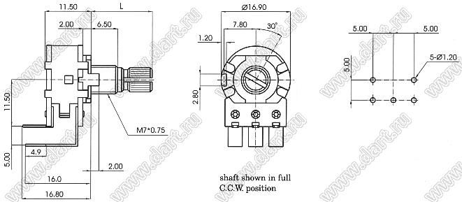 Каталог > Электронные компоненты, радиодетали > Резисторы > Резисторы переменные (потенциометры) > Роторные > 16 мм > R1620S-3D3-B103K
