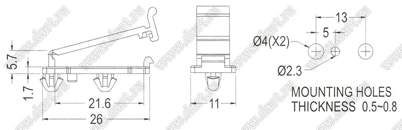 Каталог > Фурнитура для электронных устройств > Крепеж проводов и кабелей > Зажимы для плоского кабеля > с фиксацией в панель на защелке > MIBB серия > MIBB-2