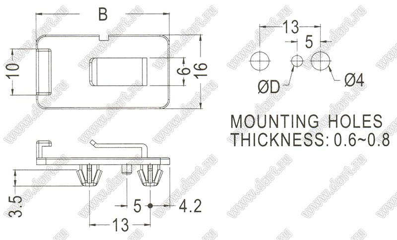 Каталог > Фурнитура для электронных устройств > Крепеж проводов и кабелей > Зажимы проводов с фиксацией в панель на защелках > MIB серия > MIB-6