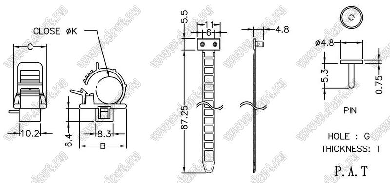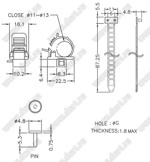 Каталог > Фурнитура для электронных устройств > Крепеж проводов и кабелей > Зажимы проводов с фиксацией в панель на защелках > SWPL серия, тип 2 > SWPL-37(B)-1