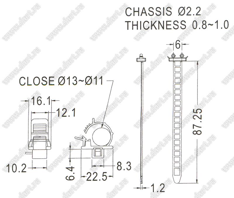 Каталог > Фурнитура для электронных устройств > Крепеж проводов и кабелей > Зажимы проводов с фиксацией в панель на защелках > SWPL серия, тип 2 > SWPL-15S