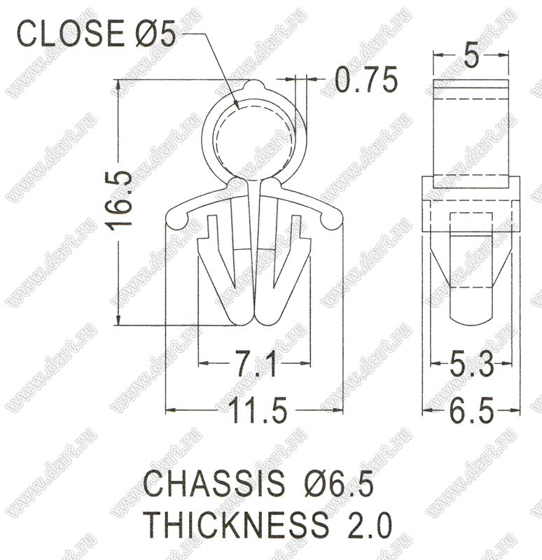 Каталог > Фурнитура для электронных устройств > Крепеж проводов и кабелей > Зажимы проводов с фиксацией в панель на защелках > OCC серия > OCC6.5-5