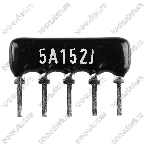 Каталог > Электронные компоненты, радиодетали > Резисторы > Резисторы постоянные > Резисторы DIP (выводные) > Резисторы SIP (сборки резисторные) > Тип A сборки резисторные > схема 5P4R > SIP 5P4R-A1K5J 5% (5A152J)