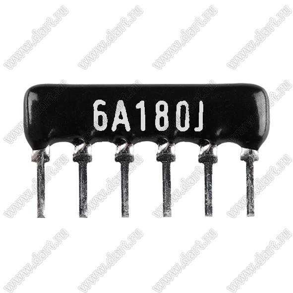 Каталог > Электронные компоненты, радиодетали > Резисторы > Резисторы постоянные > Резисторы DIP (выводные) > Резисторы SIP (сборки резисторные) > Тип A сборки резисторные > схема 6P5R > SIP 6P5R-A18RJ 5% (6A180J)