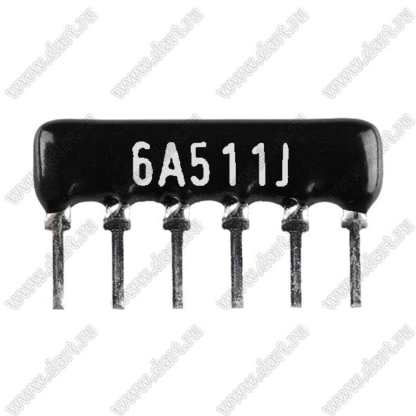 Каталог > Электронные компоненты, радиодетали > Резисторы > Резисторы постоянные > Резисторы DIP (выводные) > Резисторы SIP (сборки резисторные) > Тип A сборки резисторные > схема 6P5R > SIP 6P5R-A510RJ 5% (6A511J)