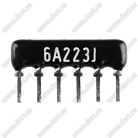 Каталог > Электронные компоненты, радиодетали > Резисторы > Резисторы постоянные > Резисторы DIP (выводные) > Резисторы SIP (сборки резисторные) > Тип A сборки резисторные > схема 6P5R > SIP 6P5R-A22KJ 5% (6A223J)