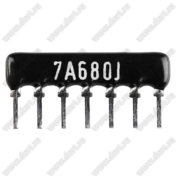 Каталог > Электронные компоненты, радиодетали > Резисторы > Резисторы постоянные > Резисторы DIP (выводные) > Резисторы SIP (сборки резисторные) > Тип A сборки резисторные > схема 7P6R > SIP 7P6R-A68RJ 5% (7A680J)
