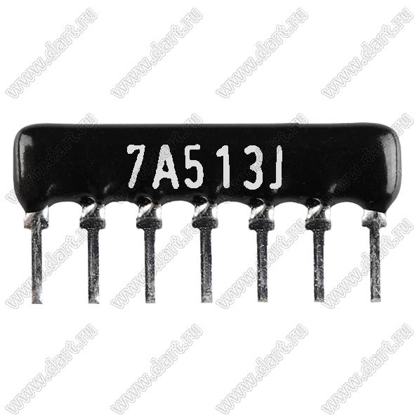 Каталог > Электронные компоненты, радиодетали > Резисторы > Резисторы постоянные > Резисторы DIP (выводные) > Резисторы SIP (сборки резисторные) > Тип A сборки резисторные > схема 7P6R > SIP 7P6R-A51KJ 5% (7A513J)