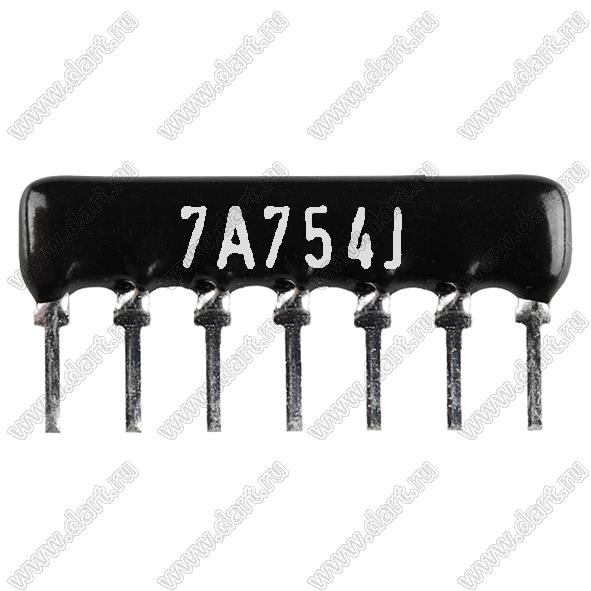 Каталог > Электронные компоненты, радиодетали > Резисторы > Резисторы постоянные > Резисторы DIP (выводные) > Резисторы SIP (сборки резисторные) > Тип A сборки резисторные > схема 7P6R > SIP 7P6R-A750KJ 5% (7A754J)