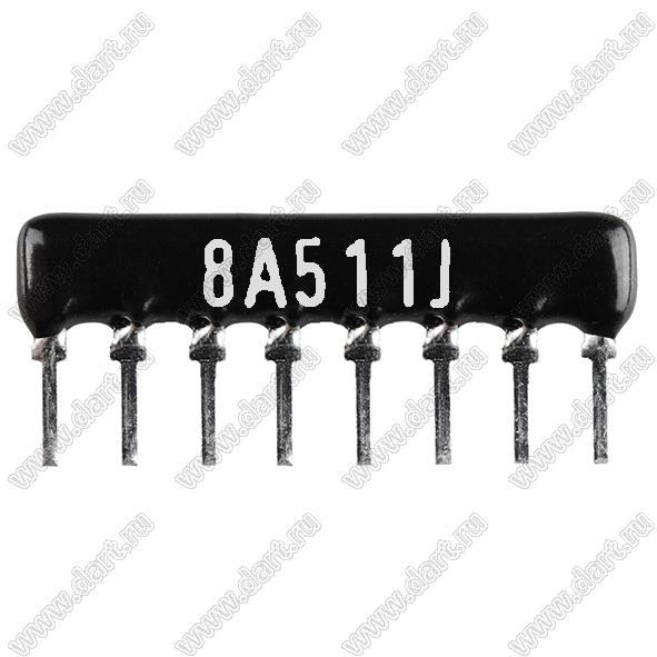 Каталог > Электронные компоненты, радиодетали > Резисторы > Резисторы постоянные > Резисторы DIP (выводные) > Резисторы SIP (сборки резисторные) > Тип A сборки резисторные > схема 8P7R > SIP 8P7R-A510RJ 5% (8A511J)