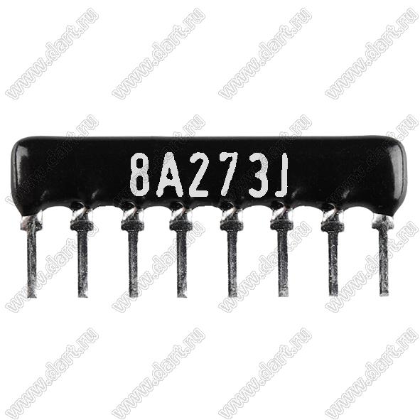 Каталог > Электронные компоненты, радиодетали > Резисторы > Резисторы постоянные > Резисторы DIP (выводные) > Резисторы SIP (сборки резисторные) > Тип A сборки резисторные > схема 8P7R > SIP 8P7R-A27KJ 5% (8A273J)
