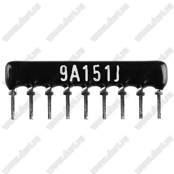 Каталог > Электронные компоненты, радиодетали > Резисторы > Резисторы постоянные > Резисторы DIP (выводные) > Резисторы SIP (сборки резисторные) > Тип A сборки резисторные > схема 9P8R > SIP 9P8R-A150RJ 5% (9A151J)