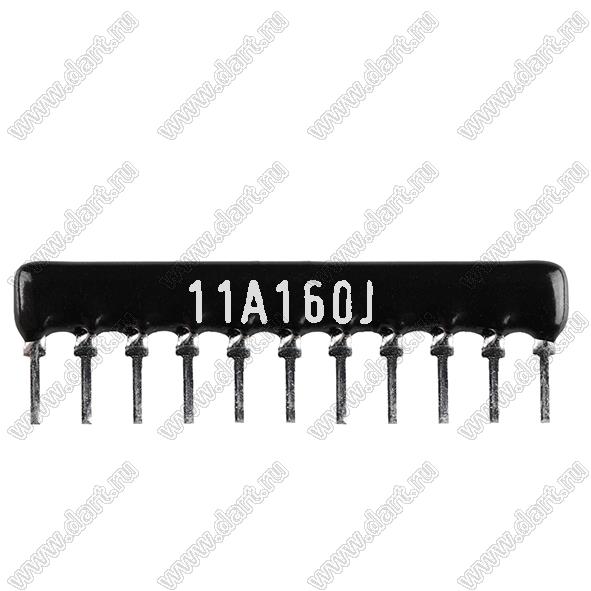 Каталог > Электронные компоненты, радиодетали > Резисторы > Резисторы постоянные > Резисторы DIP (выводные) > Резисторы SIP (сборки резисторные) > Тип A сборки резисторные > схема 11P10R > SIP 11P10R-A16RJ 5% (11A160J)