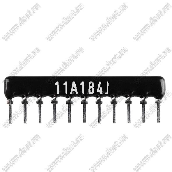 Каталог > Электронные компоненты, радиодетали > Резисторы > Резисторы постоянные > Резисторы DIP (выводные) > Резисторы SIP (сборки резисторные) > Тип A сборки резисторные > схема 11P10R > SIP 11P10R-A180KJ 5% (11A184J)