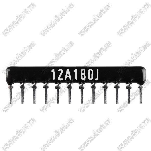 Каталог > Электронные компоненты, радиодетали > Резисторы > Резисторы постоянные > Резисторы DIP (выводные) > Резисторы SIP (сборки резисторные) > Тип A сборки резисторные > схема 12P11R > SIP 12P11R-A18RJ 5% (12A180J)