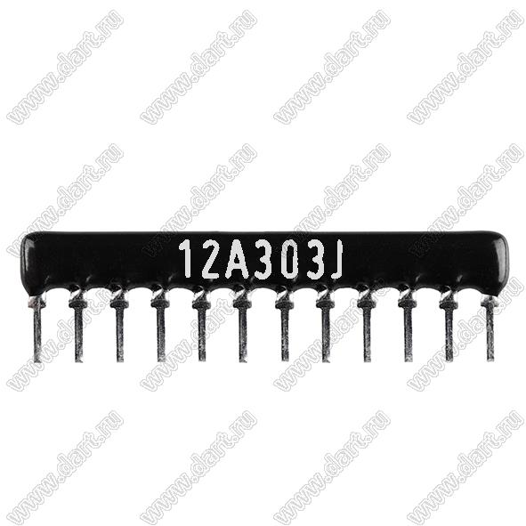 Каталог > Электронные компоненты, радиодетали > Резисторы > Резисторы постоянные > Резисторы DIP (выводные) > Резисторы SIP (сборки резисторные) > Тип A сборки резисторные > схема 12P11R > SIP 12P11R-A30KJ 5% (12A303J)