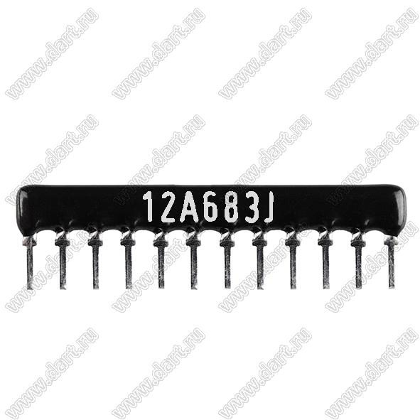 Каталог > Электронные компоненты, радиодетали > Резисторы > Резисторы постоянные > Резисторы DIP (выводные) > Резисторы SIP (сборки резисторные) > Тип A сборки резисторные > схема 12P11R > SIP 12P11R-A68KJ 5% (12A683J)
