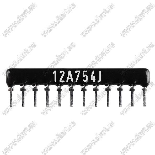 Каталог > Электронные компоненты, радиодетали > Резисторы > Резисторы постоянные > Резисторы DIP (выводные) > Резисторы SIP (сборки резисторные) > Тип A сборки резисторные > схема 12P11R > SIP 12P11R-A750KJ 5% (12A754J)