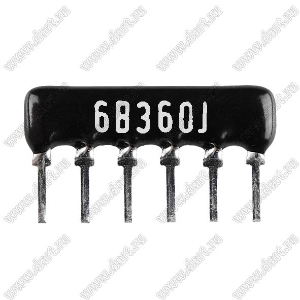 Каталог > Электронные компоненты, радиодетали > Резисторы > Резисторы постоянные > Резисторы DIP (выводные) > Резисторы SIP (сборки резисторные) > Тип B сборки резисторные > схема 6P3R > SIP 6P3R-B36RJ 5% (6B360J)