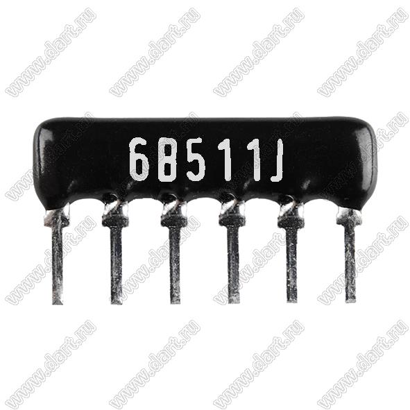 Каталог > Электронные компоненты, радиодетали > Резисторы > Резисторы постоянные > Резисторы DIP (выводные) > Резисторы SIP (сборки резисторные) > Тип B сборки резисторные > схема 6P3R > SIP 6P3R-B510RJ 5% (6B511J)