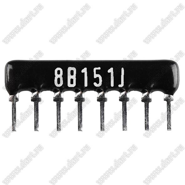 Каталог > Электронные компоненты, радиодетали > Резисторы > Резисторы постоянные > Резисторы DIP (выводные) > Резисторы SIP (сборки резисторные) > Тип B сборки резисторные > схема 8P4R > SIP 8P4R-B150RJ 5% (8B151J)