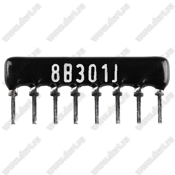 Каталог > Электронные компоненты, радиодетали > Резисторы > Резисторы постоянные > Резисторы DIP (выводные) > Резисторы SIP (сборки резисторные) > Тип B сборки резисторные > схема 8P4R > SIP 8P4R-B300RJ 5% (8B301J)