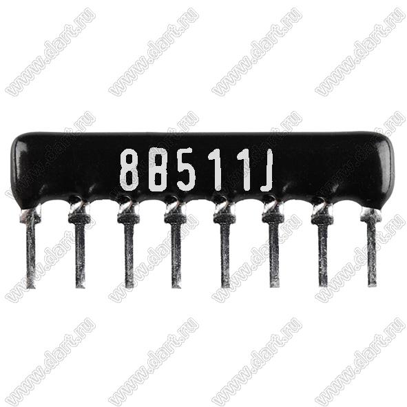 Каталог > Электронные компоненты, радиодетали > Резисторы > Резисторы постоянные > Резисторы DIP (выводные) > Резисторы SIP (сборки резисторные) > Тип B сборки резисторные > схема 8P4R > SIP 8P4R-B510RJ 5% (8B511J)