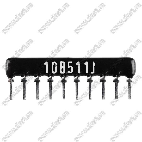 Каталог > Электронные компоненты, радиодетали > Резисторы > Резисторы постоянные > Резисторы DIP (выводные) > Резисторы SIP (сборки резисторные) > Тип B сборки резисторные > схема 10P5R > SIP 10P5R-B510RJ 5% (10B511J)