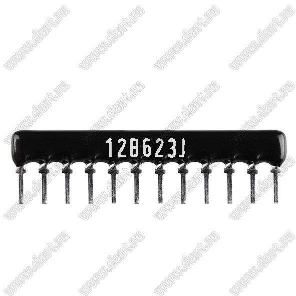 Каталог > Электронные компоненты, радиодетали > Резисторы > Резисторы постоянные > Резисторы DIP (выводные) > Резисторы SIP (сборки резисторные) > Тип B сборки резисторные > схема 12P6R > SIP 12P6R-B62KJ 5% (12B623J)