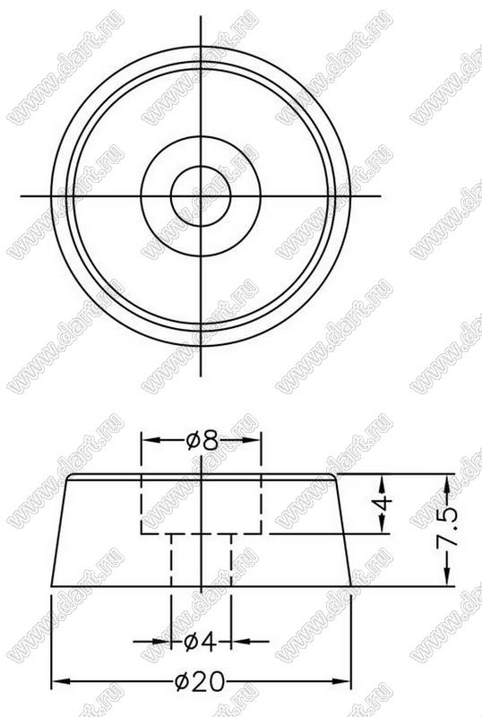 Ножка приборная; 20,0x7,5мм; резина; черный