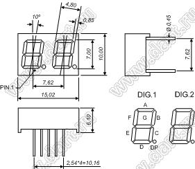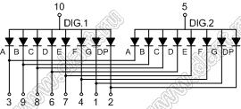 Каталог > Оптоэлектроника и индикация > Индикаторы светодиодные (сегментные дисплеи, матрицы, шкалы, светящиеся поля) > Цифровые и цифро-буквенные cветодиодные сегментные индикаторы (дисплеи) > 2-разрядные сегментные индикаторы > 2-разр. 0.28 дюйм. 7-сегм. 2281 серия > BJ2281DB