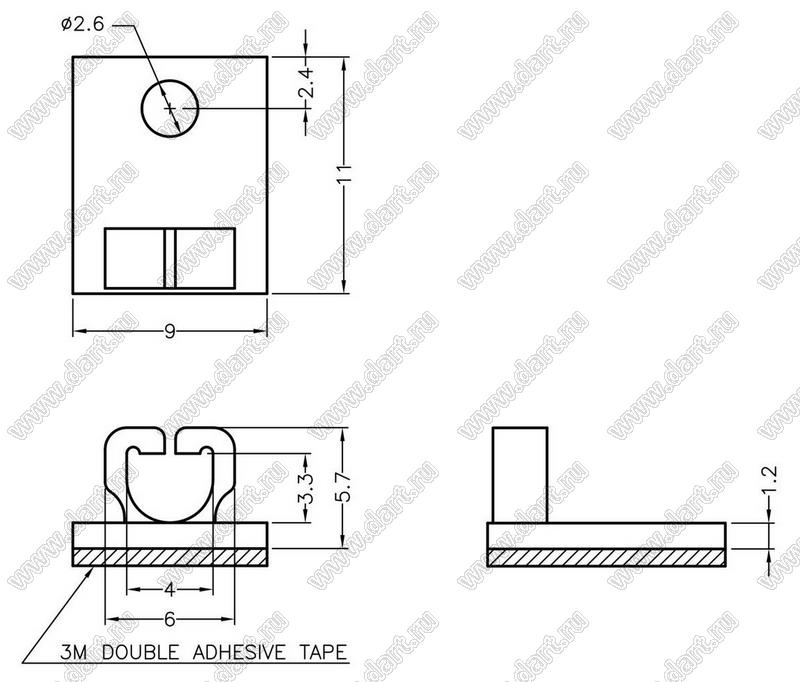 Каталог > Фурнитура для электронных устройств > Крепеж проводов и кабелей > Зажимы проводов на самоклеящихся площадках > Прочее > IMN-1(3M)