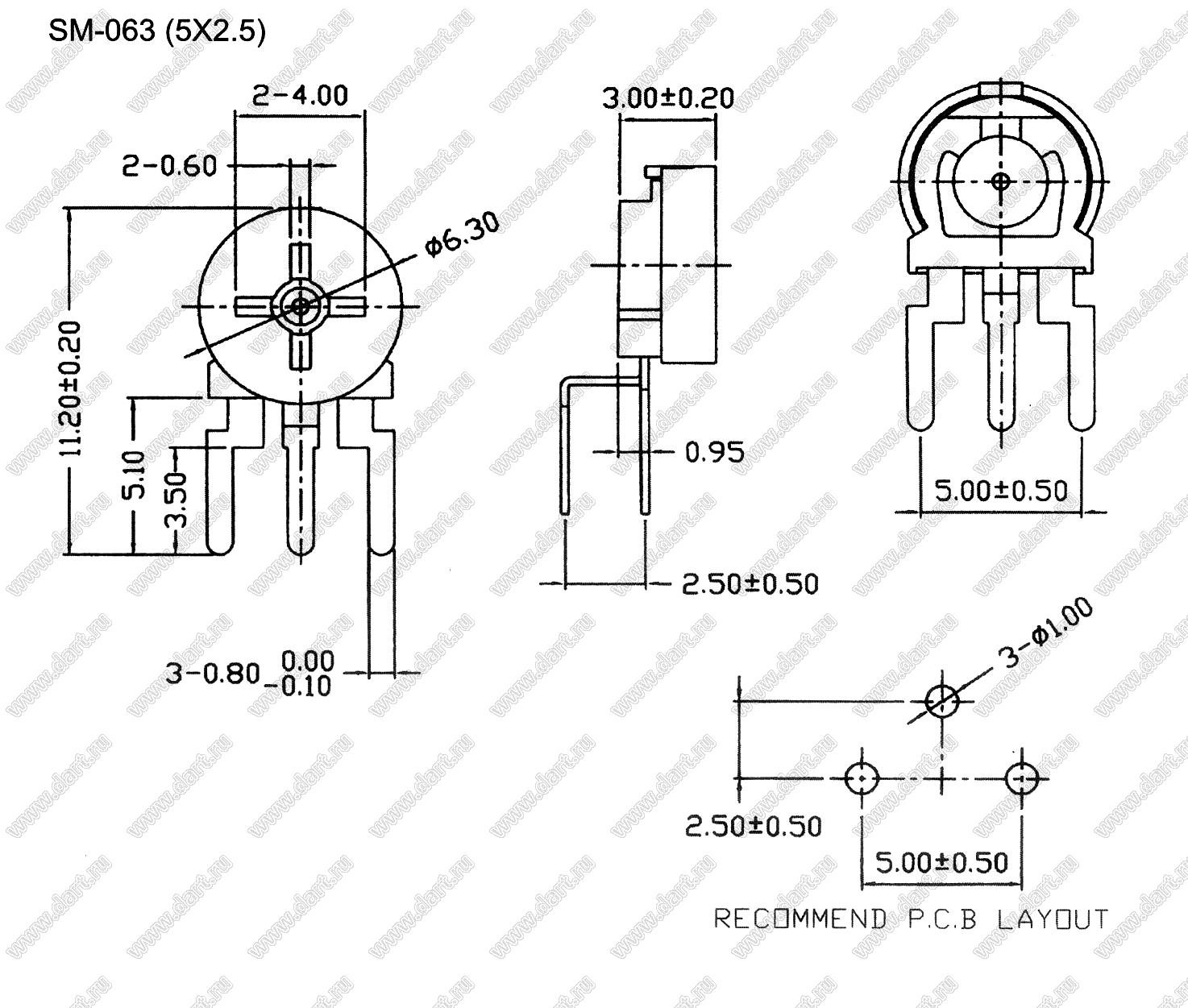Каталог > Электронные компоненты, радиодетали > Резисторы > Резисторы подстроечные > Углеродные подстроечные потенциометры > SM06 серия > SM-063-504
