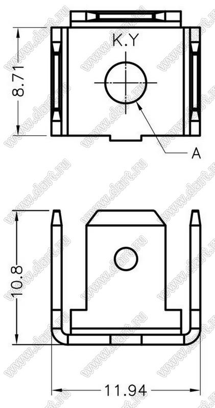 терминал для печатной платы; A=3,3мм; латунь луженая