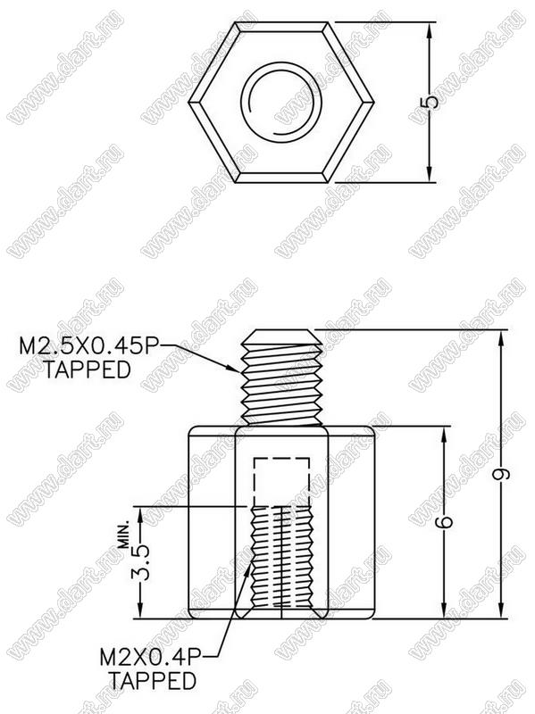 Каталог > Фурнитура для электронных устройств > Крепеж металлический (метизы) и пластиковый > Стойки резьбовые > Стойки резьбовые пластиковые > Шестигранные > TP2.5 (HTS2.5-xxx) серия > TP2.5-2-6